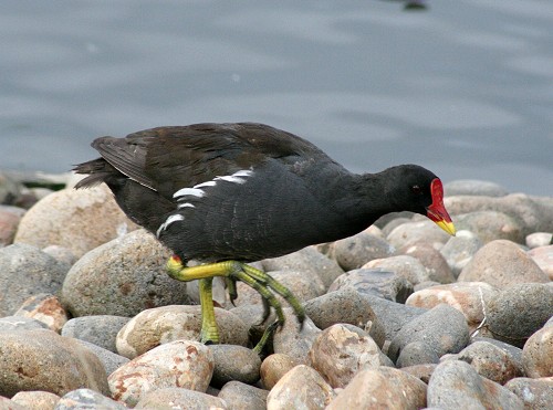 After we did our shopping and dropped our purchases off in our rooms we met back up on the lawn and picked a random direction and headed out, just to see what was out there. The driving situation here is crazy, let me tell you. Your average American would be wrecked inside of five minutes, because there doesn’t seem to be any rhyme or reason to who goes when at some of these intersections. And the bicyclists have nerves of steal, all riding down the side of the road inches away from getting hit by cars but not seeming to care, not to mention that the sidewalks are very narrow and sometimes you end up walking in the street and there’s not much you can do about it. Also, we spotted a bird that none of us knew what it was, and we instantly dubbed it the “silly footed cock-pidgeon”. A very nice retired fellow at the back gate of King’s College told it was a “Moorhen”. This is what they look like: